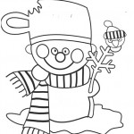 Dětem jsem nakreslila bílou pastelkou na černý papír sněhuláka. Děti si natřeli bílou barvou korkovou zátku a tiskaly na sněhuláka. Knoflíky-uhlíky děti domalovaly štětcem, stejně jako nos a hrnec.