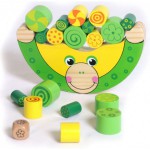 Výbornou pomůckou pro rozvoj jemné motoriky a zároveň i velmi oblíbenou hrou mezi dětmi je Balanční žába. Hra procvičuje nejen jemnou motoriku, ale i logický úsudek. Dítě hází kostkou a podle toho, jaký symbol padne, musí položit odpovídající váleček na žábu. Ta se ovšem nesmí překlopit. Rozměry 16 x 15 cm, vyrobeno ze dřeva.