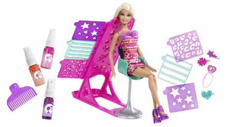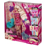 Češe vaše holčička panenkám krásné účesy? S Barbie Vlasovým design salonem může rozvinout svou kreativitu i talent a zkusit si práci skutečné vlasové stylistky. Vlasový salon obsahuje mycí koutek, otáčivou židli, stoleček se zrcadlem, speciální vlasový stojan, ochrannou pláštěnku, ručník, hřeben, 3 barevné spreje, šablonky a gumičky. Stejně jako ve skutečném vlasovém studiu si Barbie oblékne pláštěnku, která ochrání její stylové minišaty, usedne do otáčivého křesla a svěří své krásné vlasy do rukou malé kadeřnice.