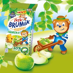 Nová svačinka BeBe Brumík Jahůdka a BeBe Brumík Jablíčko udělá radost dětem i jejich maminkám. Lahodná náplň Brumíka totiž obsahuje 45 % ovoce a to vše samozřejmě bez barviv a konzervantů. Pokud ale chceme dětem dopřát svačinu, která je nejen chutná, ale také vyvážená, měli bychom Brumíka doplnit ještě o kousek čerstvého ovoce a sklenici mléka.