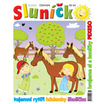 Červnové Sluníčko je plné koníků. Děti si přečtou příběh o hříbátku Aprilce, dozvědí se, jak to vypadá na rytířském turnaji, a také si mohou vystřihnout rytíře na koni nebo klisnu s hříbátkem. Připraveno je i krásné „koňské“ PEXESO. Na čtenáře čekají i další oblíbené rubriky jako malované čtení, labyrint, Dráček mráček nebo Kutil Pupík.