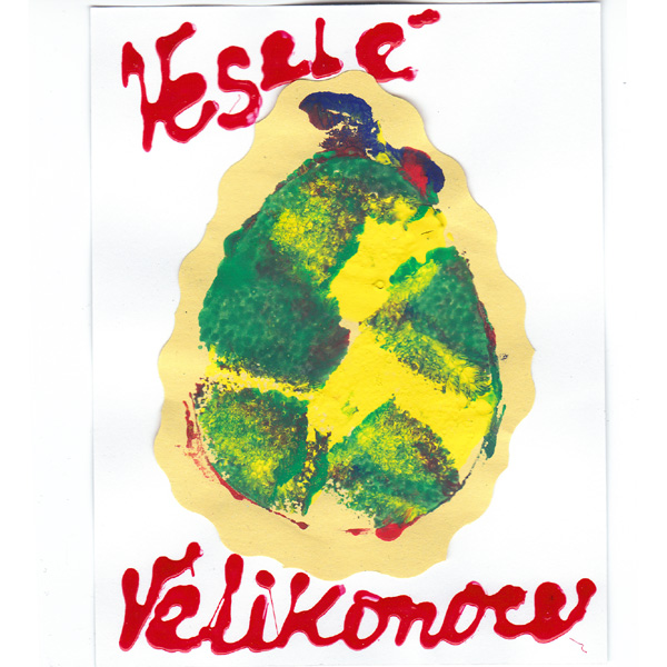 Postup: dle libosti vytvoříme šablony na tvrdý papír. Vymalujeme temperkama, přilepíme na špejli. Do květníku dáme pruh polystyrenu, navrch ozdobnou trávu. Na okraji květníku je přilepená …