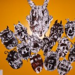 Čertí třída, nalepené a vystřihané kousky čtvrtky na čtvrtce a přejeté válečkem s černou (tmavou) barvou.