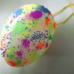 S Dominikem (budou mu v květnu 3 roky) jsme bílá plastová vajíčka potřeli lepidlem a poté na ně sypal barevný písek a perličky. Výsledek nás mile překvapil a výroba je velmi jednoduchá i pro malé děti. Autor: Michaela Čebisová