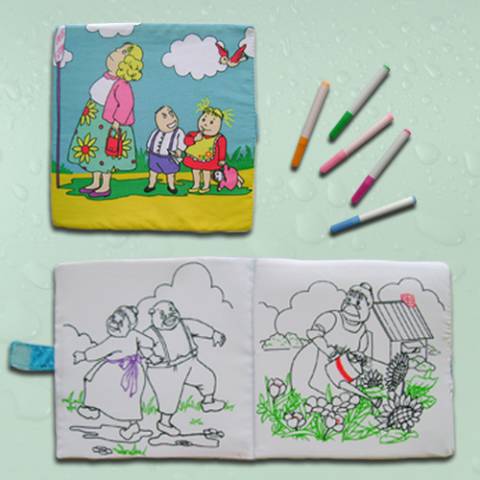 Oblibě se u dětí těší nejen elektronické, ale i tvořivé a výtvarné hračky. Pro děti jsou atraktivní vodou omyvatelné látkové knížky. Jedná se o výtvarnou sadu 3 v 1, která obsahuje látkovou obrázkovou knížku s omalovánkou a sadu pěti speciálních vodou omyvatelných fixů. Děti mohou vybarvený obrázek jednoduše umýt pod studenou tekoucí vodou a malovat dále. Mohou tak donekonečna vymýšlet barevné varianty obrázků a vybarvit si knížku podle své fantazie. Na trhu jsou zatím k dispozici tři varianty vodou omyvatelných knížek – s motivem dinosaurů, rodinného setkání a knížka o koupání. Brzy však přibudou další originální dětské motivy.