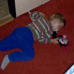Můj syn Pavlík Ipser (3 roky) si nejraději hraje s autíčkama, vláčkama a ještě raději čte písmenka a čísla. Není ani divu, že po takové “námaze” to často dopadne takto…