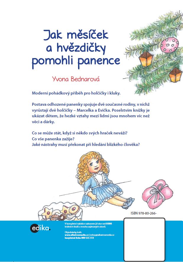 Kniha „Jak měsíček a hvězdičky pomohli panence“, určená pro děti od 4 let, vychází v nakladatelství EDIKA. Autorkou příběhu je Yvona Bednarová a knihu provází něžné iustrace Ivany Tučkové. Zakoupíte ji u všech běžných knihkupců.