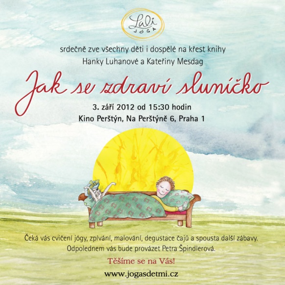 Od dnešního dne je v prodeji nová dětská knížka Jak se zdraví sluníčko autorky Hanky Luhanová a ilustrátorky Kateřiny Mesdag. Knížka plná hravých básniček, veselých obrázků a dobrodružství je určena nejen všem dětem, ale i jejich rodičům. Jakmile ji otevřete, poznáte, že není lepší způsob, jak začít den, než pozdravem slunci. Tuto nejznámější jógovou sestavu cvičí lidé na celém světě. Má mnoho obměn, a tak vás školák Oliver (starší bráška Lali z knihy Lali cvičí jógu) naučí hned dvě varianty − lehčí pro předškoláky a těžší pro školáky a dospělé.