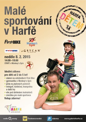Oblíbená dětská tělocvična Monkey´s Gym připravila pro malé caparty další Malé sportování s FirstBIKE. Koná se v neděli 8. února 2015 od 14 do 18 hodin v Galerii Harfa. Vstup je zdarma.