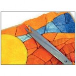 čtvrtkou, aby náhodou nepropadávala). Pro zapichování a hlavně pro předcházející vyřezávání linek je potřeba, aby v rámu seděla skutečně pevně. Lze také pracovat na velkém formátu.