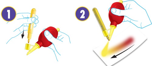 - Zmáčkněte balónek a vytvářejte obrázky podle své fantazie. Postupným foukáním se barva bude měnit (obdobně jako u klasické práce s Blendy pens) a váš foukaný obrázek tím získá jedinečné barvy a odstíny!