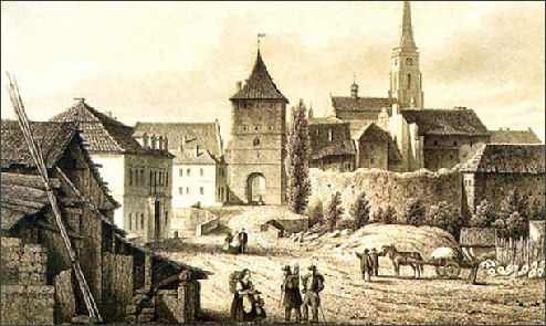 Když v Staré Plzni, kteráž nyní Plzenec slove, měšťané o to se radili, kterak by město své rozšířili a nenalezevše žádné příhodnosti pro to, neb městečko mezi vrchy a nerovinami postaveno bylo, musili od rozšiřování upustiti. Jednoho pak času měli u vězení svém dvě osoby, to se věděti nemůže, z jakých příčin se tam dostaly. Ty dvě osoby postavy mužské jsouce, žádaly měšťanů a starších téhož městečka, aby byly vedeny tu, kdež ony vědí, že by jim chtěly místo ukázati, na kterém by příhodné město postaviti mohli. I povolili tomu Staroplzeňští a vedli je v poutech na to místo, které jsou jim ukazovaly, až přišli k nějakému kostelíku, malému sv. Panny Barbory, který nyní kaple jest v klášteře bosáckém v ambitě, od toho pak kostelíku nedaleko byla krčma tu, kde nyní dům Heverníkův (čp. 115 v dnešní Zbrojnické ulici) stojí a tu byla silnice. Když pak na to místo přišli, ty dvě osoby těm, kteří je tu přivedli, mluvily, pravíce, aby tu město založili a o tom městu předpovídaly, že přijde k povýšenosti a pověst jeho, že jiným a mnohým národům známa bude a že Pán Bůh pro obyvatelův toho města cnost vždycky milostivým ochráncem jeho bude. A tak v ten způsob mnoho jiného předpovídajíce, oba zmizeli, tak že ani těch pout viděti nebylo. Hned jak se to stalo, oni oznamujíce sousedům svým Plzeneckým, po několika dnech počali město vyměřovati a tak v brzkém od toho času je založili.