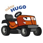 - 3. Povinným tématem každé soutěžní výtvarné práce díla je vlastní zobrazení maskota nebo maskotů soutěže při cestě do pohádky na travnaté zahradě, v parku či na dětském školním hřišti. Maskoty soutěže jsou zahradní traktor Hugo, sekačka na trávu Hanka a motorová pila Heda (viz níže uvedené vzory):