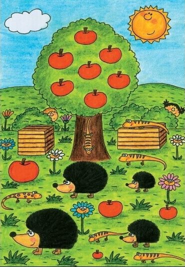 Přiřaď každému ježkovi jedno jablko podle velikosti.