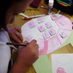 Materiál: balící papír, tapetové lepidlo, temperové barvy, nůžky, lak na dřevo ředitelný vodou Postup: na balící papír rozetřeme rukou tapetové lepidlo do vlhké vrstvy lepidla naneseme…