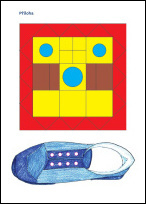 Příloha o velikosti A4 s geometrickými tvary a botou: