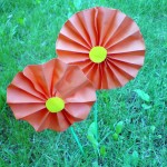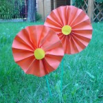 Z pruhu barevného papíru uděláme “harmoniku”. Tu k sobě přilepíme tak aby vznikl kruh a květinka je hotová 🙂