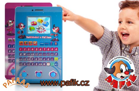 Dětský Pafíkův tablet s kreslicí tabulkou – Interaktivní hračka kompletně v češtině! Učí písmena, slova i číslice, hraje melodie a dá se na něj psát i kreslit. Interaktivní hračka s kompletní českou abecedou. Dětský tablet má tlačítkové ovládání a kompletní plnohodnotnou českou abecedu (háčky, čárky). Učí vaše děti písmena, slova, hláskování slov i číslic. Hraje dětské melodie a přináší vaši dětem skvělou zábavu. Originální provedení s pejskem Pafíkem je od známé výtvarnice Romany Andělové (autorky krkounů – sobotního pořadu na ČT1 planeta Bimbuli).