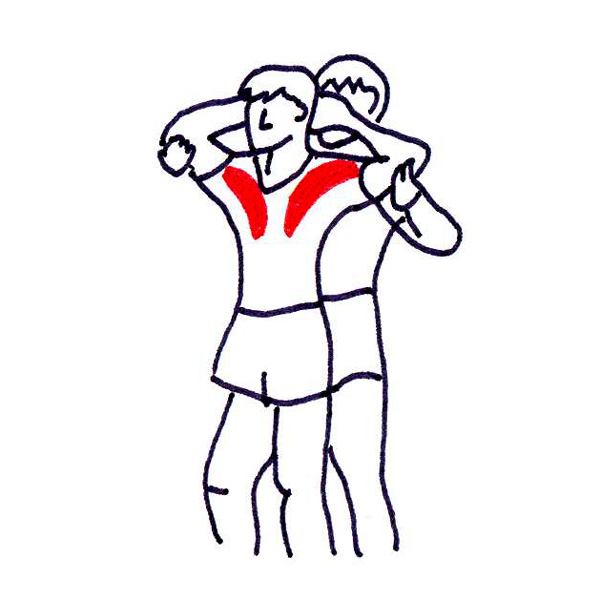 • Loket táhneme tak, aby pokrčená paže směřovala k protější lopatce.