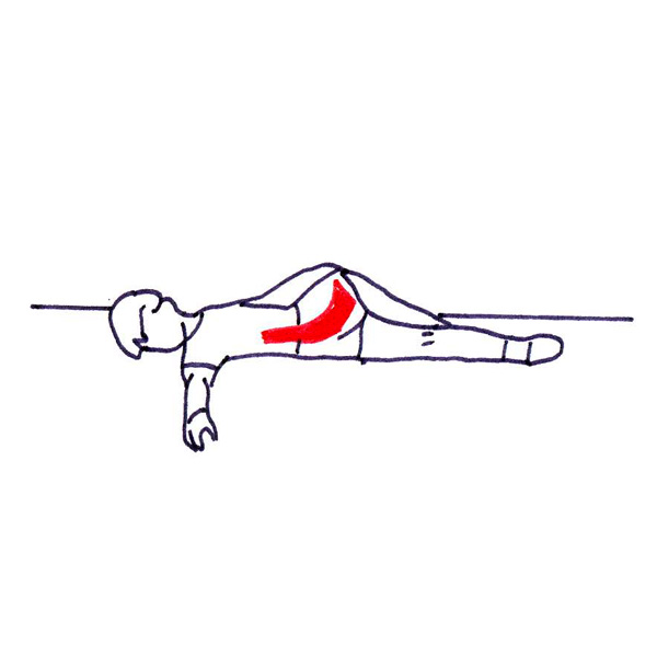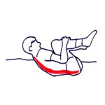 - Leh na zádech (kolíbka), obě kolena rukama přitahujeme co nejblíže bradě.