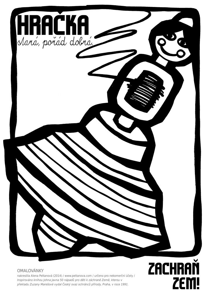 Omalovánky s ekologickou tématikou pro předškoláky i školáky. Díl druhý: HRAČKA. Inspirováno knihou Johna Javna “50 nápadů pro děti k záchraně Země” (v překladu Zuzany Marešové vydal Český svaz ochránců přírody Praha v roce 1991).