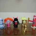 Pomůcky: šikovné ruce a trpělivost, barevná keramická mozaika, spárovací hmota, dřevěný rámeček, figurky z kinder vajíček