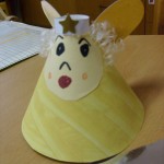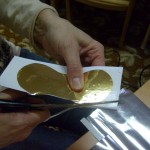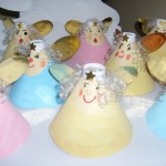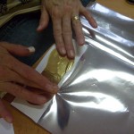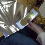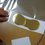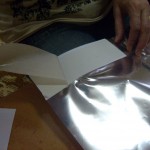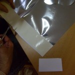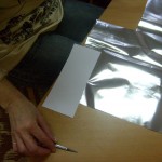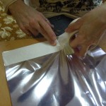 Postup: z bílého papíru vystřiháme ozdobné tvary – hvězdičky, stromečky, zvonky … Balící vánoční papír nastřiháme na velikost požadovaného výrobku – obdélník, kolečko, čtverec … , případně podle velikosti laminovací fólie. Do fólie vložíme jako podklad vánoční papír a na něj naaranžujeme ozdobné vystřihovánky. Společně zalaminujeme. Menší tvary pak z celého kusu vystřihneme.