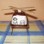 Pro svého syna, když byl ještě malý, jsem vyrobila tyto dva vrtulníky. Jeden byl jako větrník (z tvrdého papíru) a druhý jako hračka (kelímek od pudinku, doktorské špachtle, samolepky, papír). (Alena M.) http://picasaweb.google.cz/alcinykoralky