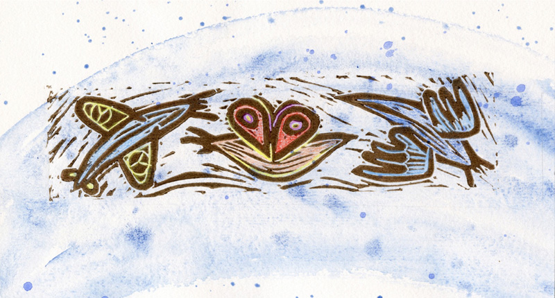 Do oken tmavého pokoje svítila pouliční lampa. Občas krátce zablikala, jak to tak lampy na rozloučenou dělají a pak zhasla úplně. Už nepatřila k nejmladším, stejně jako oba obyvatelé malého pokoje v podkroví, kde na dřevěném psacím stole, uprostřed prázdných šnečích domečků, ležel kocour a tiše předl. Bílá záře jeho chlupatého těla dopadala na proutěné houpací křeslo, zapomenutou klec na papouška, hromádky starých knížek a nevynechala ani spící hlavu pana Vojena. Bylo už dávno po večeři, ale v pokoji pořád zůstávala vůně melty a rozpečených rohlíků.