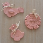 Slepička, vajíčko a zajíc – opět použitá toaletní rulička na zajíce, olepená hnědým papírem, dolepena ouška, oči a nosík dokreslen fixem,slepička je stočená z trojúhelníku, tečky jsou z děrovačky, délka trojúhelníku zvolena podle velikosti vajíčka.