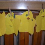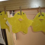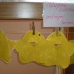 - Kuřátka – Kuřátka vyrobeny z půlek citronu, usušených, nalepena hlava z vatové kuličky, natřená žlutou temperou, dolepena peříčka jako křídla, zobáček a očička.