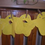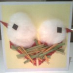 - Přání kuřátka – na žlutý papír obdélníkového tvaru, přeložen napůl,nalepeny dvě vatové kuličky-kuřátka, očičko čtvereček papíru a zobáček z lepenky. Hnízdo, trojúhelník z lepenky a kousky barevného lýka.
