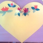 Předškoláci vystřihovaly kuřátko a dokreslily. Vystřihly srdíčko a vložily kuřátku mezi křidýlka. Pomůcky: červený a žlutý papír, nůžky. (Bc. Hana Š.)