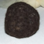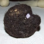 - Hotovou kuličku obalíme v hnědé ovčí vlně.