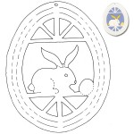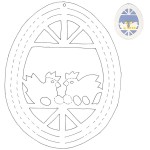Vytvořil Honzík. Nakopírovanou šablonu vajíček a slepičky vybarvil a vystřihnul a nalepil na zelený podklad, který dozdobil kokosovým vláknem. Blanka Lakomá