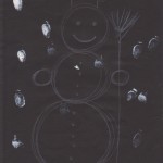 - Prstovými barvami domalujeme sníh kolem sněhuláka
