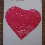 Lukášek (6 let) si vystřihnul z čtvrtky přání, z barevného papíru děrovačkou udělal srdce, která nalepil lepidlem a obrázek namaloval pastelkami. Na přední stranu použil vodové barvy, které roztíral houbičkou. (Romana J.)