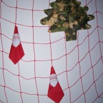Červený ubrousek smotáme do kornoutu a vsuneme do kroužku – špička tvoří čepici.