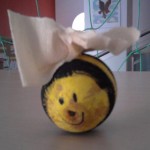 • Včelka – křídla z krepáku a dokreslený obličejík. MŠ Letců – žabičky