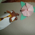 - Kytičky – z růžového papíru vystřihneme, složíme a nalepíme na podklad ze zelených lístečků, které jsme také vystřihly.
