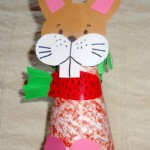 Pomůcky: bílý a hnědý tvrdý papír, růžový, červený a zelený měkký papír, černý fix, nůžky, lepidlo, lepicí pistole, tužka, “květináč” na záda zajíce, šablona
