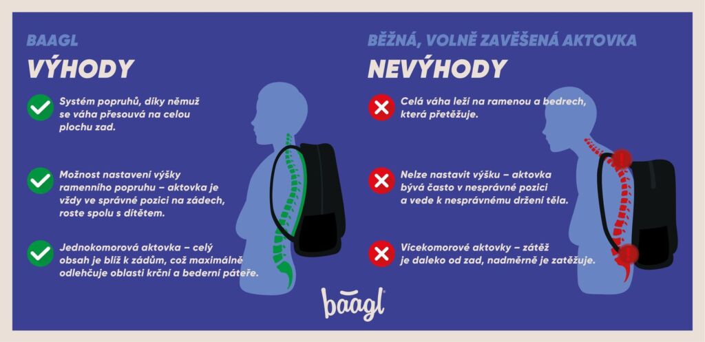 Jednou z předních značek ergonomických batohů a aktovek na trhu je česká značka BAAGL, která nabízí široké spektrum druhů a motivů. Základními vlastnostmi produktů značky Baagl jsou: