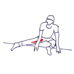 • Dřep únožný, nataženou nohu propneme, prsty se lehce dotýkají podlahy, hlava zpříma.